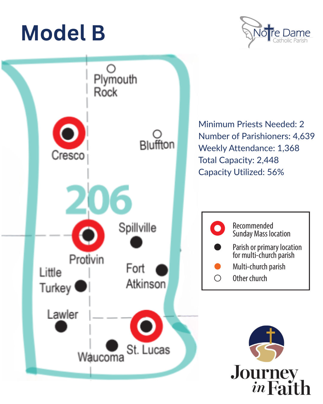 The Archdiocese of Dubuque has released the first set of potential map options, each map proposes how we could restructure parish clusters into larger pastorates. These changes would affect our parish, including where and how Masses are celebrated.